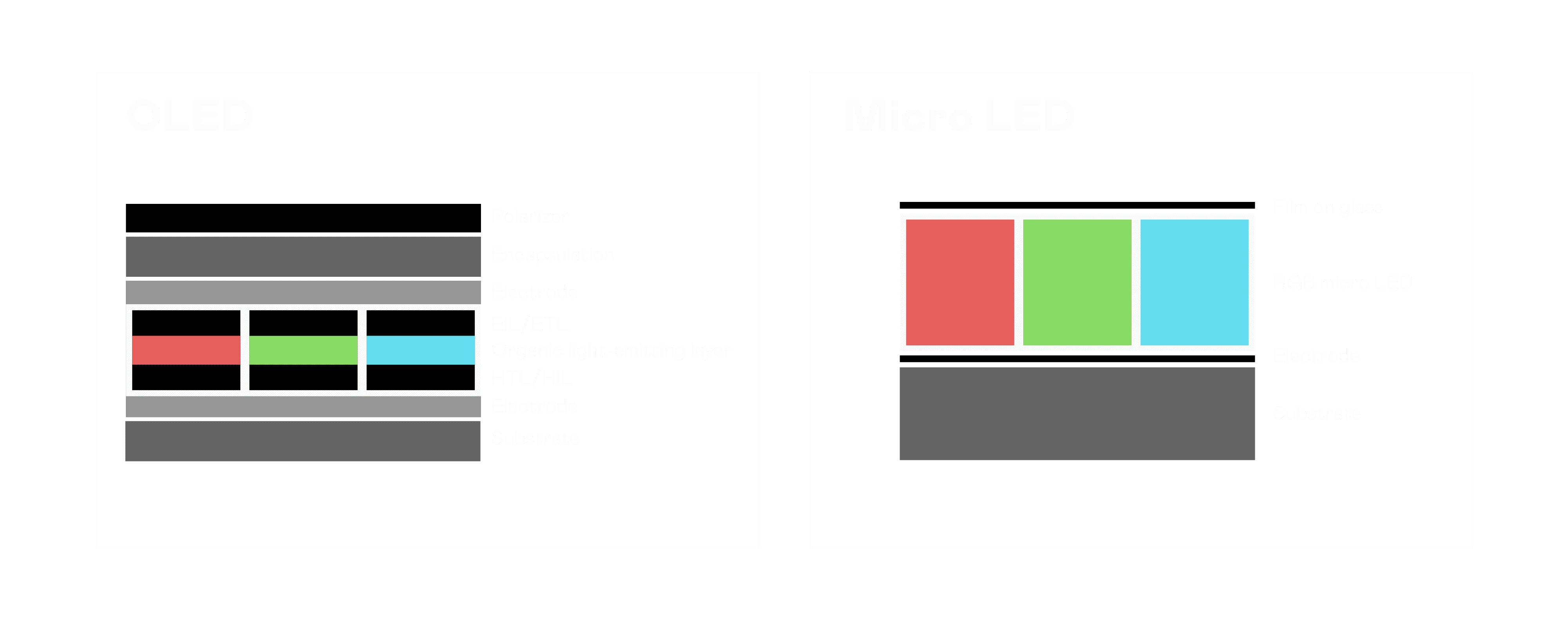 以 LED 做为显示画素,,,可让 LED 的发光效率发挥到极致,,从而让显示器具备优异的亮度表现,,,,不论是在户外或室内,,,,均具备出众的显示效果。。。同时,,,,与使用有机材料的 OLED 相比,,LED 具备更稳定、、寿命更长的特性,,不仅不会有画面烙印问题,,,,而且更不容易出现故障、、、、坏点。。