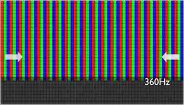传统液晶驱动是从左到右单向进行,,在画面更新速度愈来越愈快的情况下,,,,位于驱动线路末端的右下角区域,,,画素的闸极来不及在短时间内获得足够电压,,,无法显示出正确的颜色资讯。。。。 |