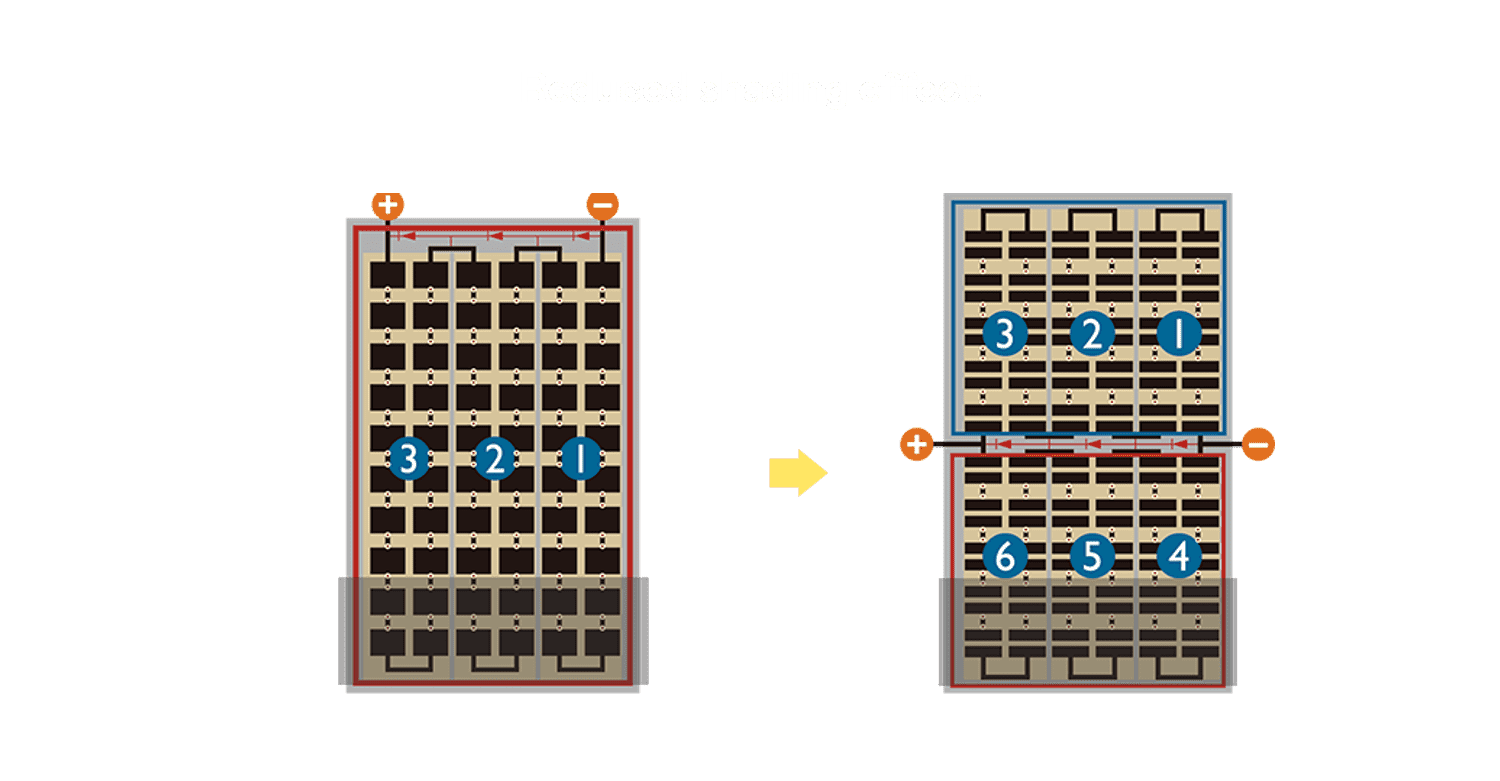 - 结合半切电池,,,降低遮阴影响、、、、提升模组抗隐裂能力、、、、并减少电阻损耗,,进一步提升模组发电效能。。。