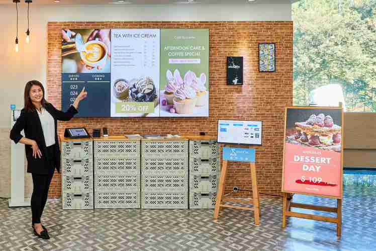 着眼零售场域空间需求多变化,,,,巨星国际也领先业界开发 TARTAN 弹性拼接显示墙,,可搭配 CMS 内容管理系统,,,协助业主整合音乐、、、影片档案,,,,与第三方如 POS、、、、品牌网站的数据,,,并且确保数字内容不失真,,,,让业主尽情创作数字内容,,发挥品牌营销策略与创意。。。本次展出的 TARTAN 显示器搭配 CMS,,透过 42寸长条型显示器及 22.9寸智慧货架显示器可做商品导购、、、显示产品履历或实时价格,,,同时可播放动态广告吸引消费者驻足;并运用AI技术收集资料,,,与广告内容交叉比对,,,,提供消费者有兴趣的产品广告。。。。