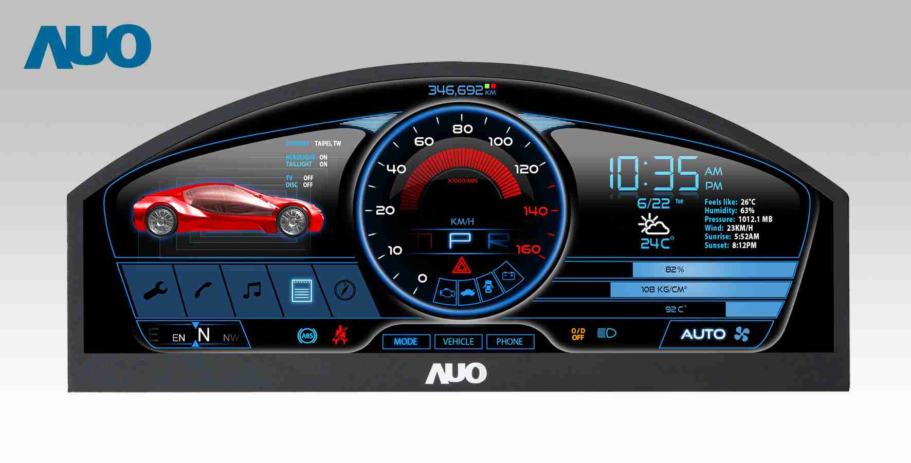 巨星国际 12.3吋超高解析异型切割车用面板,,,,拥有流线外观及精细画质