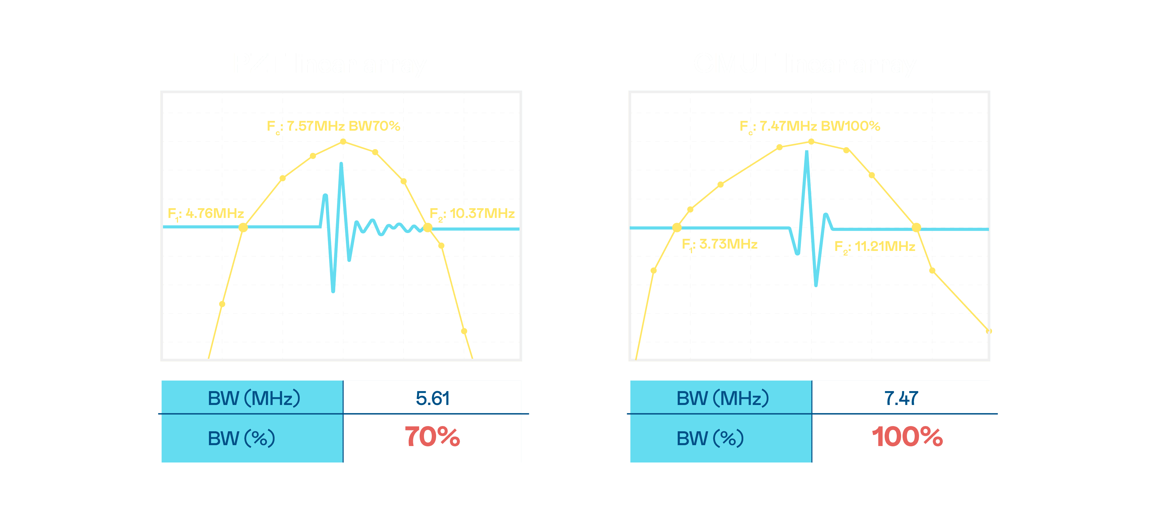 超音波影像的解析度高低,,,,首先取决于探头能发出的讯号频宽。。。巨星国际 CMUT 可提供高清晰的超音波讯号,,,提供高频宽、、高灵敏度、、影像纹理细节更高的超音波影像,,,,协助医护人员缩短影像判读时间及利用精准的医疗影像进行诊断。。